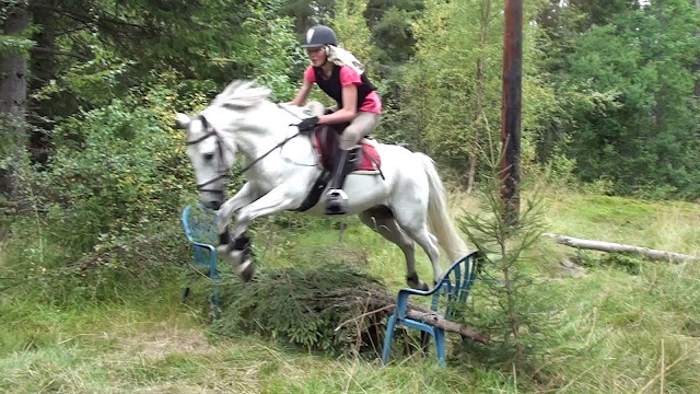 Jag och kirsten hoppar själv-byggda fältävlans hinder:D Hästarna älskade det!