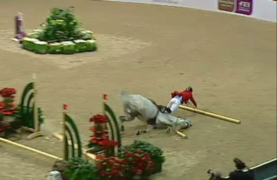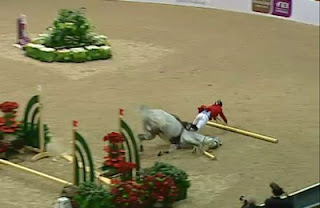 <-------Så här såg det förmodligen ut. På bilden är det Peder Fredricsson som går omkull. Så det kan hända alla. Den här omkullridninge handlade också om ett missförstånd mellan häst och ryttare.
