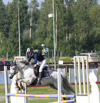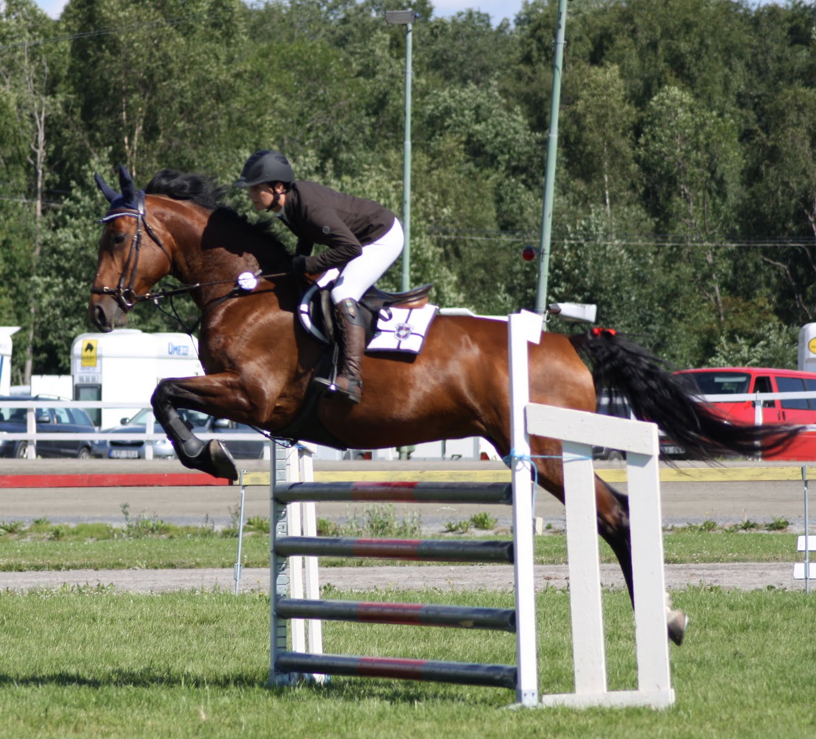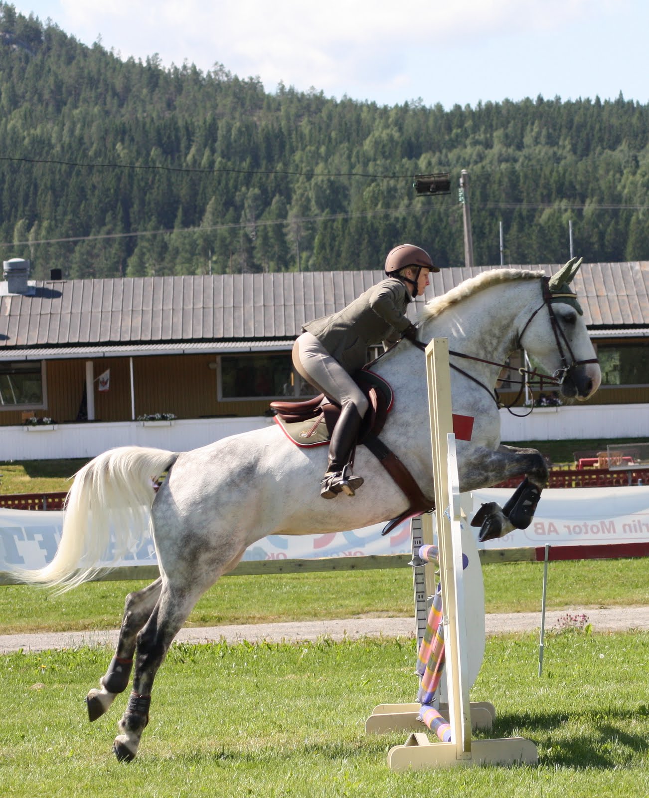 I lördags bar det av med pherrari till gidhundsjö för att hoppa två rundor. Målet var att få en bra känsla och att pherrari skulle ha en bra självkänsla:) Fasten det var OTROLIGT varm(30 grader) så hoppade han som en klocka. Vi hade en fin och lugn, jämn rytm genom hela banan och jag kände inte en enda gång att han ville vägra! Till och med när jag gjorde några tabbar så räddade han situationen och rev inte:) Duktiga pollen!